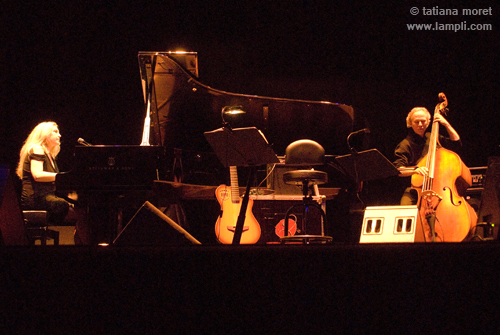 Y vamos que si lo sacó, además sabe como hacerlo y de quién rodearse. El segundo tema de la noche, el clásico ‘Chega de saudade’ del maestro João Gilberto, empezó con una sutil introducción y un homenaje a los grandes compositores de Brasil, a guitarra y voz, evocando el más genuino sonido de la música carioca, para irrumpir con una vigorosa improvisación a piano que comenzaba con ritmos Bossa nova, para finalizar a ritmo “walking” mas jazzero. Una transición perfecta en la que el exquisito Marc Johnson al contrabajo y el no falto de recursos Rafael Barata a la batería, consiguieron dar el peso y la seguridad de una robusta y compacta base rítmica, a la altura de lo que la diva de São Paulo se merece. Curioso fue el protagonismo que se le otorgó al joven Barata, con constantes diálogos improvisados de piano a batería y varios meritorios solos, en los que mostraba su capacidad técnica y conocimiento del estilo.