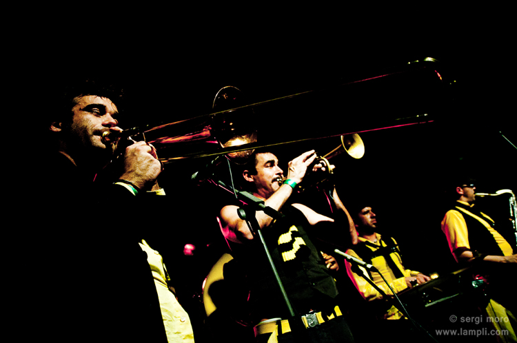 En tercer lloc, una de les sorpreses de la nit (almenys per un servidor): els Always Drinking Marchine Band amb en Guillem Albà al capdavant. No sé si fan música, si fan teatre… el que si sé es que et fan petar de riure! A les persones que estàvem embovats veient el xou ens va costar-hi entrar, però un cop t’hi capbusses no pots parar.
